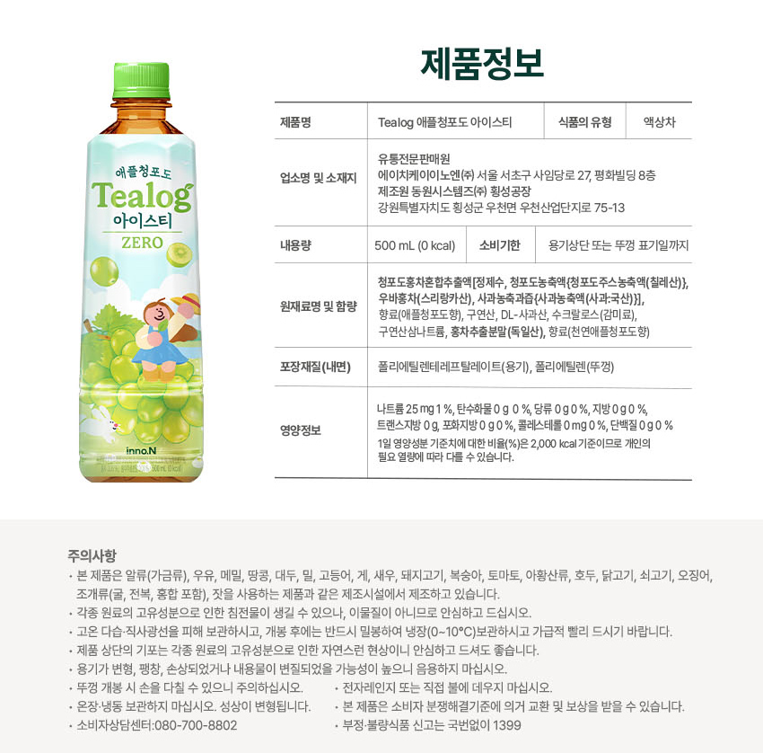| 용량(중량), 수량, 크기 | 500ml x 24병 | ||